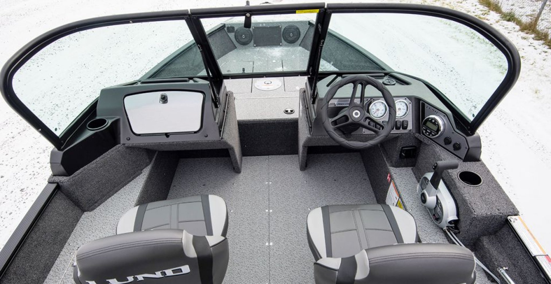 The full windshield 1650 Angler Sport is one of Lund's best 16 foot fishing boats. It's versatile enough to fish small lakes yet large enough for safety in rough windy water. This best in class Lund fishing boat is loaded with features including a spacious cockpit front and rear fishing platforms lockable rod storage a livewell and ample storage compartments for fishing gear.