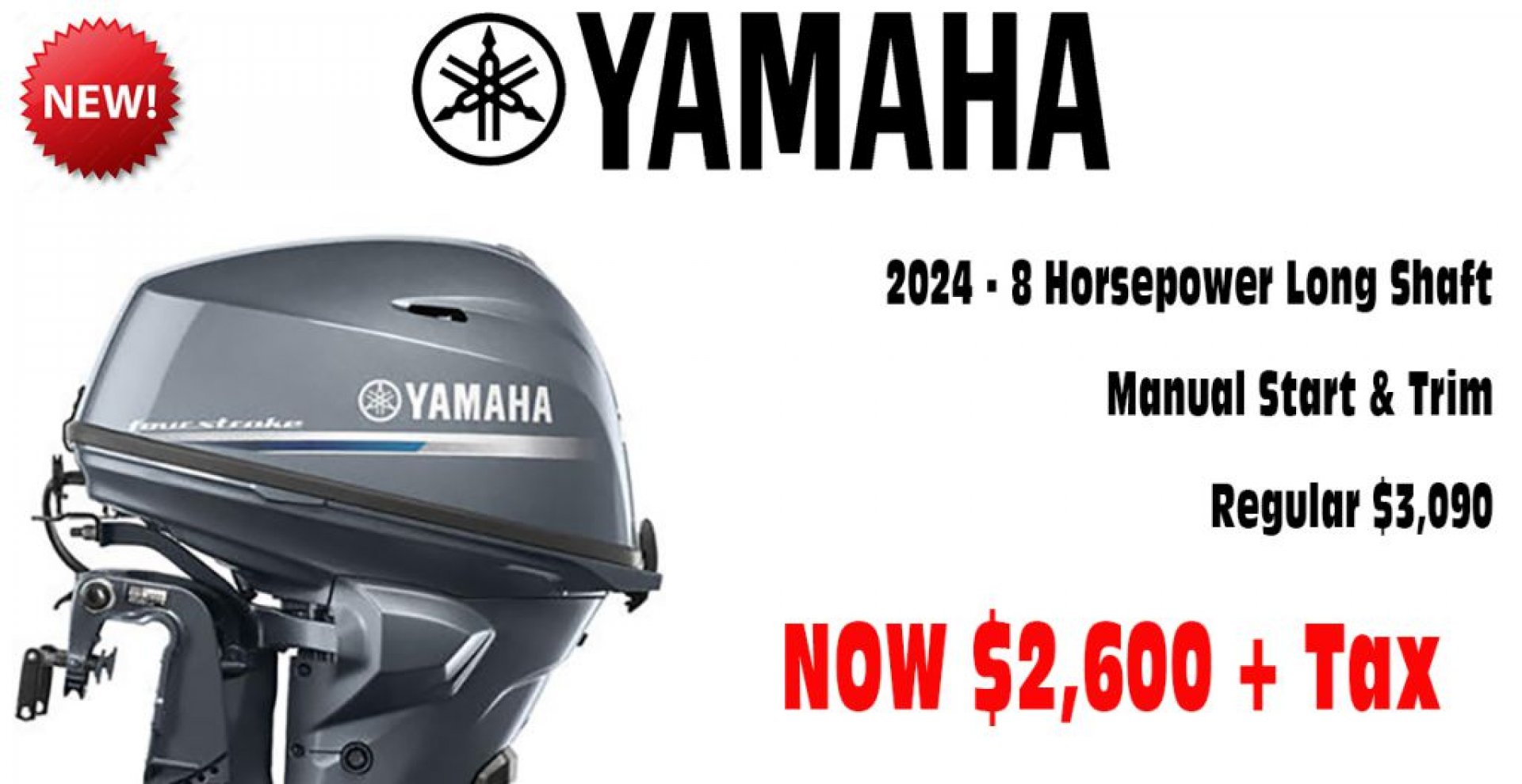 The features all the benefits of a reliable Yamaha 4-stroke outboard in a compact, lightweight and portable package that rivals any 2-stroke. If you are looking for the ultimate in reliable, compact and efficient portable power for your boat, this Yamaha will deliver you many years of hassle-free performance. Brand New in a crate, full warranty – No Hours.