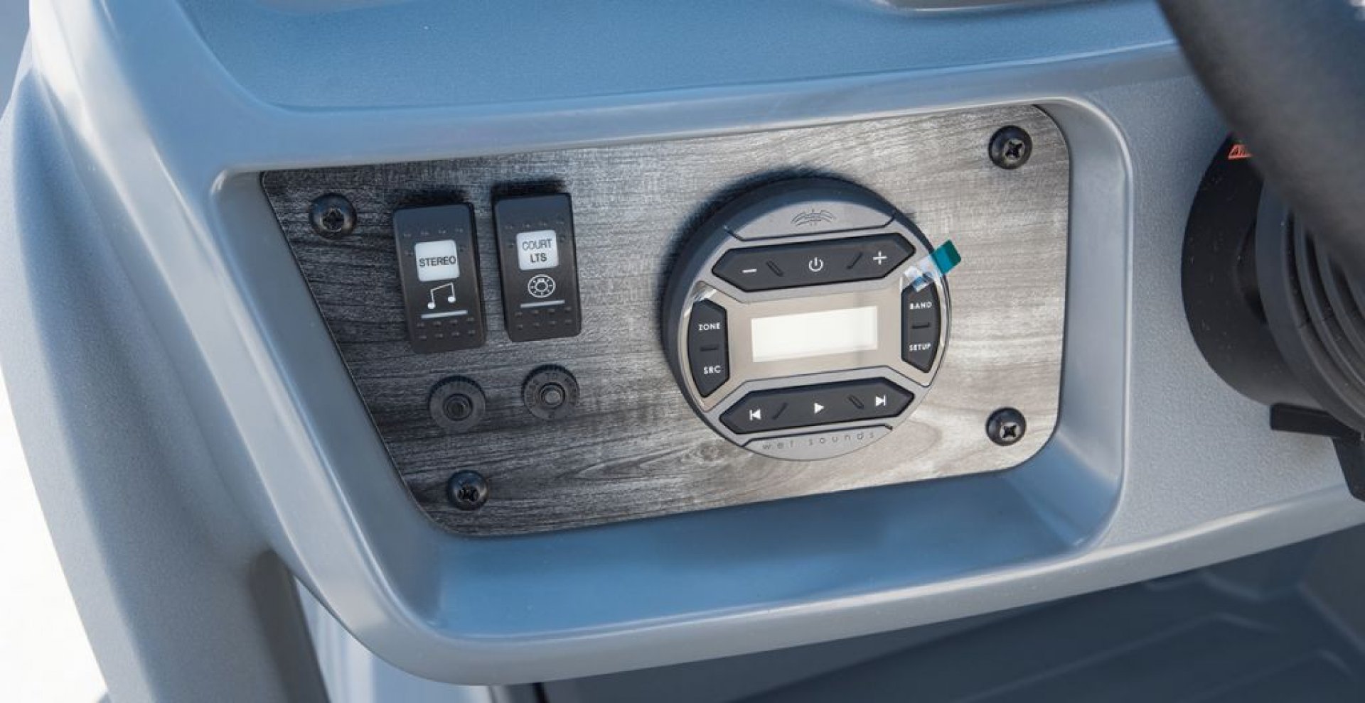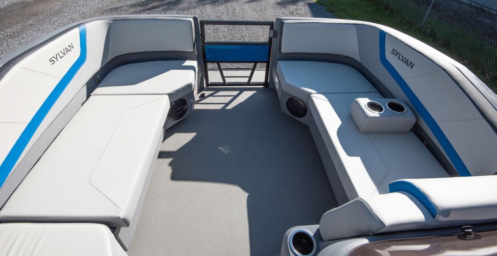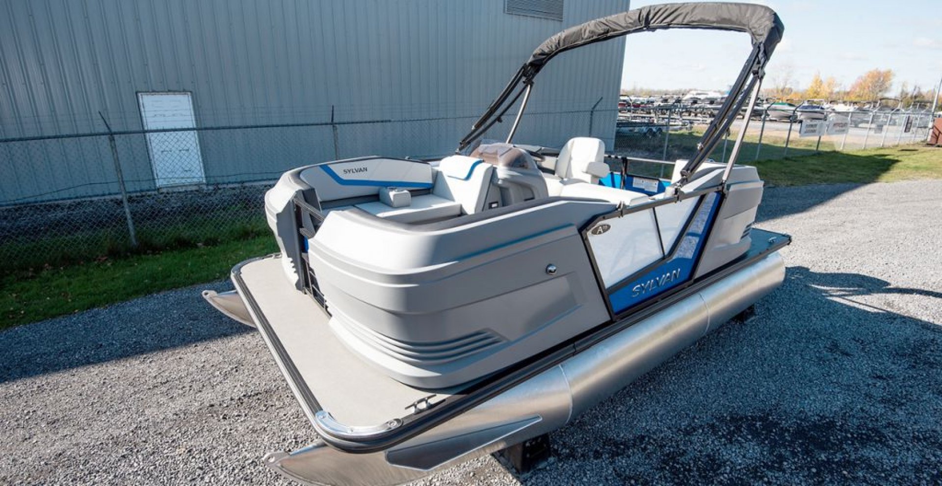 The Sylvan A-Series 16 LZ is a stunning pontoon boat designed for both comfort and style. Featuring port side full lounge area that maximizes the seating capacity with both forward and rear facing lounges and a bucket helm chair. The full sea weave flooring enhances durability while providing a sleek, modern aesthetic. Equipped with robust 23" diameter tubes and rotocast molded corners, the design seamlessly integrates into the side panels, creating a streamlined appearance that stands out on the water. Additionally, the included bimini top ensures sun protection, making it an ideal choice for leisurely days out on the lake.