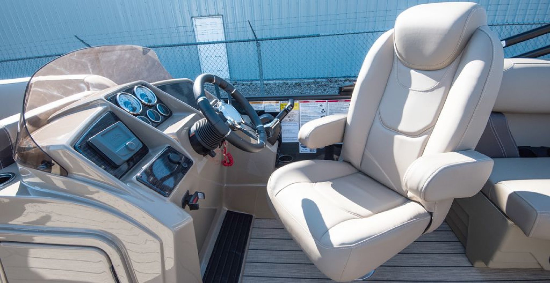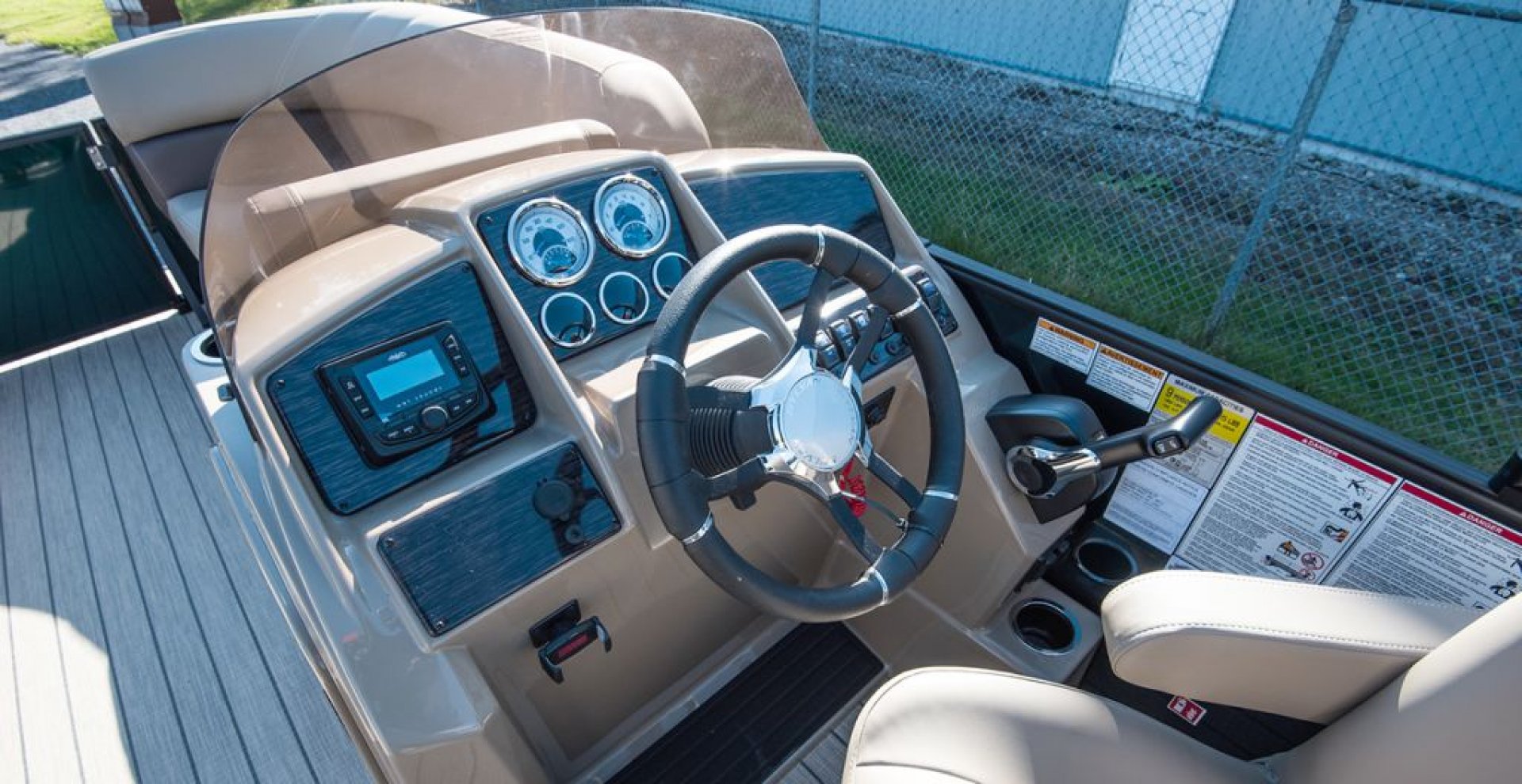 The Sylvan Mirage 8520 LZ pontoon is the epitome of family-friendly boating, offering an array of features designed to enhance your time on the water. With its power bimini top, you can easily adjust for shade or sunshine, ensuring comfort for everyone aboard this spacious pontoon. Four wrap-around couches maximize seating capacity, providing ample space for family gatherings and leisurely cruises. The full fiberglass console not only adds durability but also offers a large storage area to keep your belongings organized and accessible. Additionally, the convenient four-step telescoping ladder makes boarding and disembarking from this pontoon a breeze, perfect for swimming adventures or simply enjoying the water. Whether you're seeking relaxation or excitement, the Sylvan Mirage 8520 LZ pontoon is your ideal companion for unforgettable moments on the water with your loved ones.