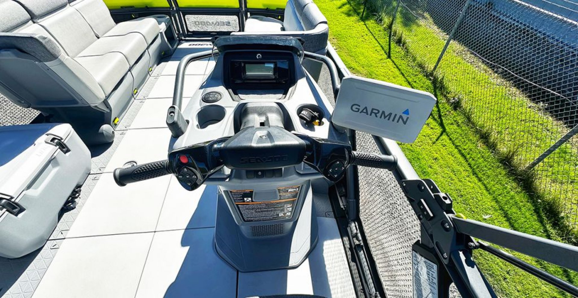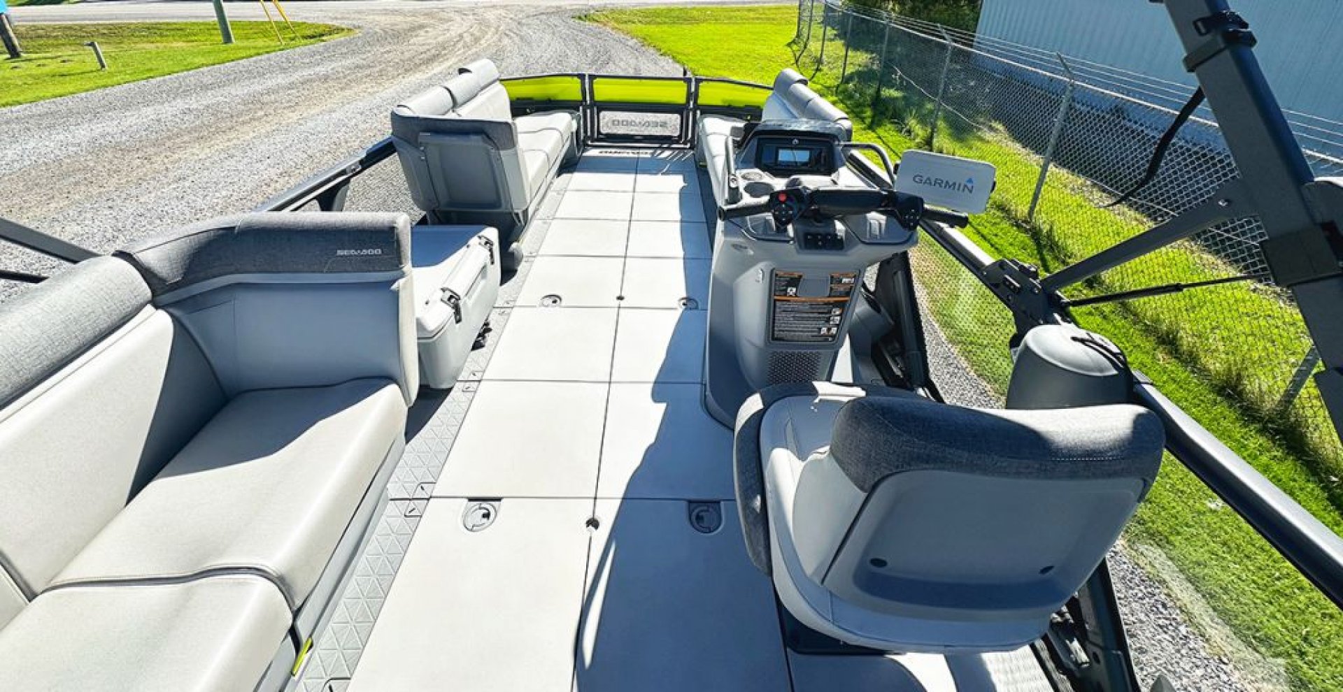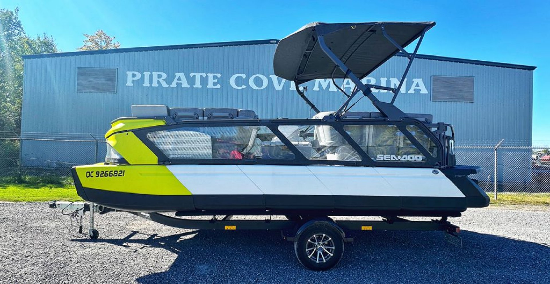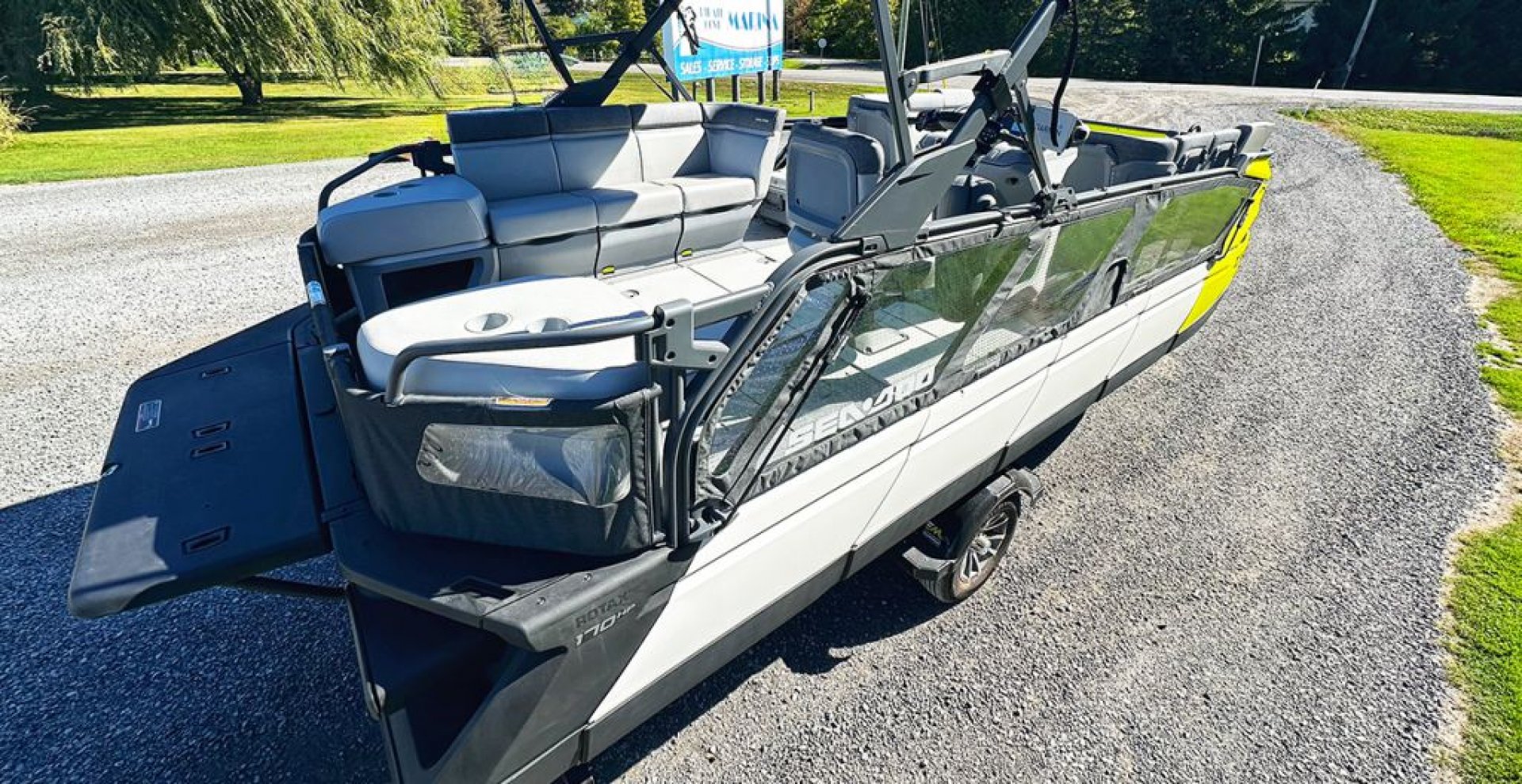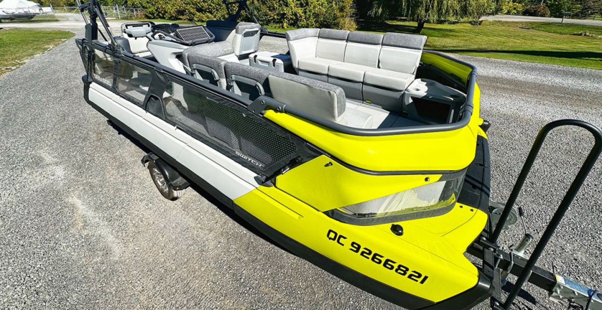 Let the fun begin with this 2023 Sea-Doo Switch Cruise is a 21-foot model, with a 1630 ACE 170HP engine. Key features across the line include the Polytec™ hull, a versatile modular design with customizable layouts, a Garmin 7" touchscreen GPS, and a 100W BRP Audio system. This 21-foot model offers up to 9 people capacity and extensive storage. It even comes with a cooler and a Bimini for those hot days! Karavan trailer included. This package has passed a full mechanical inspection.